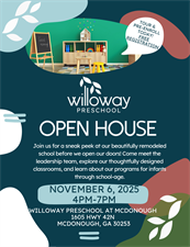 McDonough, GA – November 6, 2025 – Willoway Preschool is excited to invite families and community members to its Open House at the newly remodeled McDonough location on Thursday, November 6, 2025, from 4:00 PM to 7:00 PM.